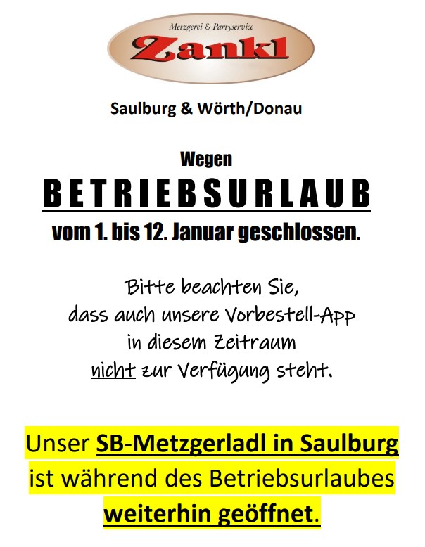 Unser Hauptgeschäft liegt in Saulburg in der Gemeinde Wiesenfelden, im Bayerischen Wald. Die Metzgerei wurde 1967 von Helmut und Brigitte Zankl gegründet, damals als Pachtbetrieb mit Metzgerei und Gasthof in Saulburg.